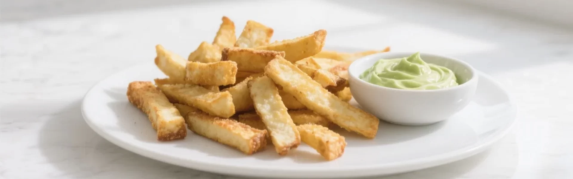 Air-Fried Tofu Chips (Fries) with Spicy Avocado Mayo Dip
