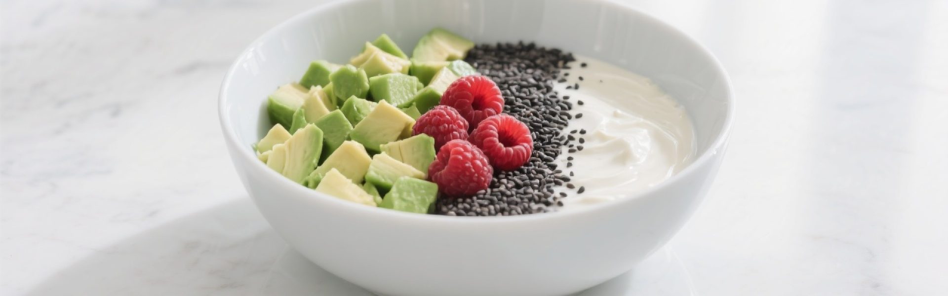 This breakfast bowl is a powerhouse of plant-based protein and soluble fiber, perfect for anyone seeking a light, energizing start to the day. Silken tofu provides a creamy, neutral base that’s naturally low in cholesterol and saturated fat, while chia seeds and avocado add healthy fats and a big boost of soluble fiber. A few fresh raspberries bring a pop of color and flavor without pushing up the sugar content.
