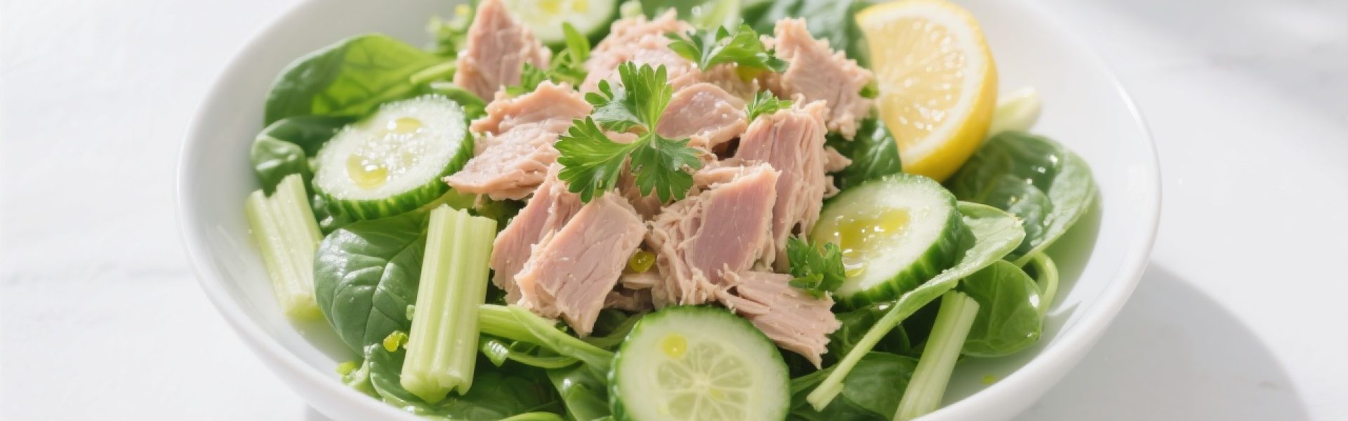 A light, protein-packed lunch featuring flaky tuna, crisp greens, and a zesty lemon-herb dressing—perfect for a low-carb, ultra-low saturated fat midday meal.